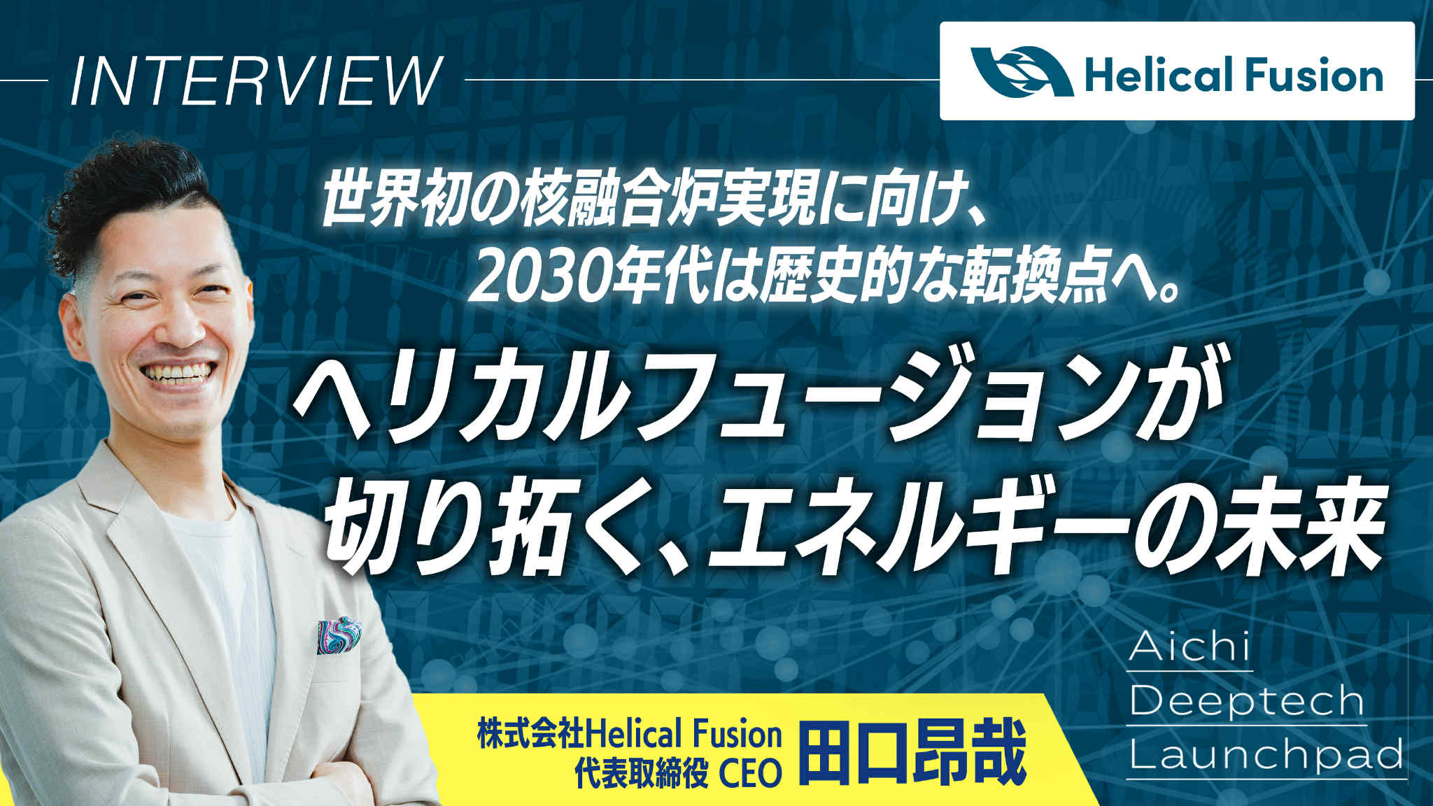 ディープテックスタートアップの成長を支援することを目的とし、主にプレシード期、若しくはシード期のディープテック系スタートアップを対象として、総合的な成長サポート(メンタリング、マッチング、経営スキル研修等)を提供する愛知県主催のプログラム「Aichi Deeptech Launchpad」(以下、ADL)。 2025年度のアクセラレーションプログラムと並行し、過去に参加したスタートアップの現在に迫るインタビューを掲載します。今回は、2023年度、2024年度、2025年度と3年にわたりADLにご参加いただいている「株式会社Helical Fusion(ヘリカルフュージョン)」の代表取締役CEO 田口 昂哉さんにお話を伺いました。