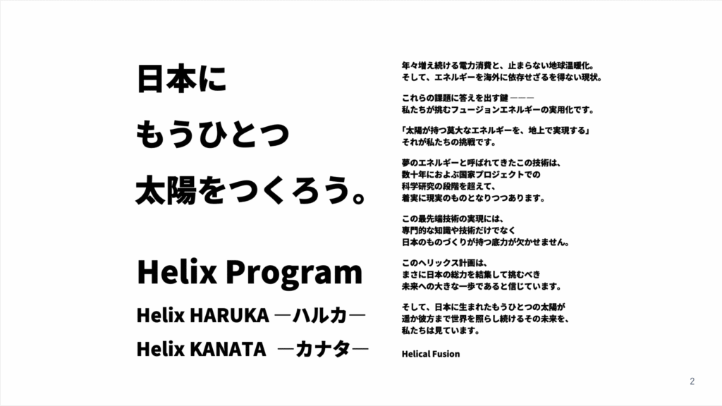 ——2030年代に世界初の「実用発電」を目指す、Helix Programについて教えてください。